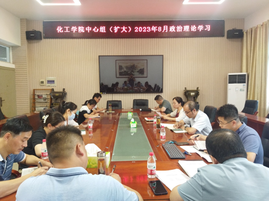 8月26日下午,化工学党委理论学习中心组(扩大)在14教西303会议室开展2023年8月集中学习。党委书记王丽主持学习会。全体学院领导、科级及以上干部参加学习会。