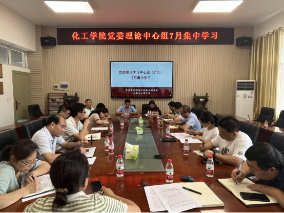 7月14日下午,化工学党委理论学习中心组(扩大)在14教西303会议室开展7月集中学习。党委书记王丽主持会议,全体中心组成员、科级及以上干部、教工党支部书记参会。