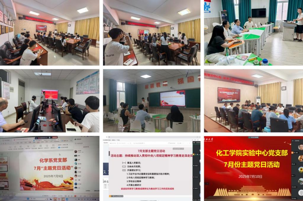 7月9日至10日期间,化工学院党委各党支部以“持续推动深入贯彻中央八项规定精神学习教育走深走实”为主题,陆续开展了主题党日活动,推动理论学习走深走实、见行见效。