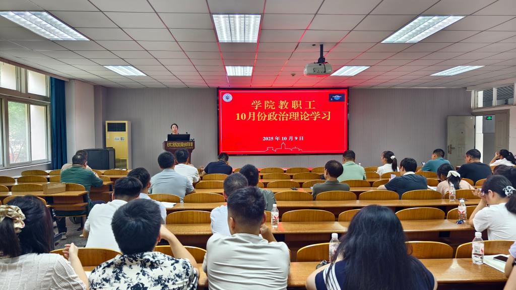 10月9日,学院召开全体教职工政治理论学习大会,党委书记王丽主持会议并领学。会议深入学习了习近平总书记近期发表的重要讲话、重要指示批示精神,系统学习了《习近平谈治国理政》第五卷的重点内容,引导广大教师深刻把握党的创新理论的核心要义和实践要求。会议还专题传达学习了湖北省省长王忠林主持研究全省教育高质量发展工作的相关精神。会议强调,要始终坚持立德树人根本任务,牢牢把握正确办学方向,努力办好人民满意的高等教育。