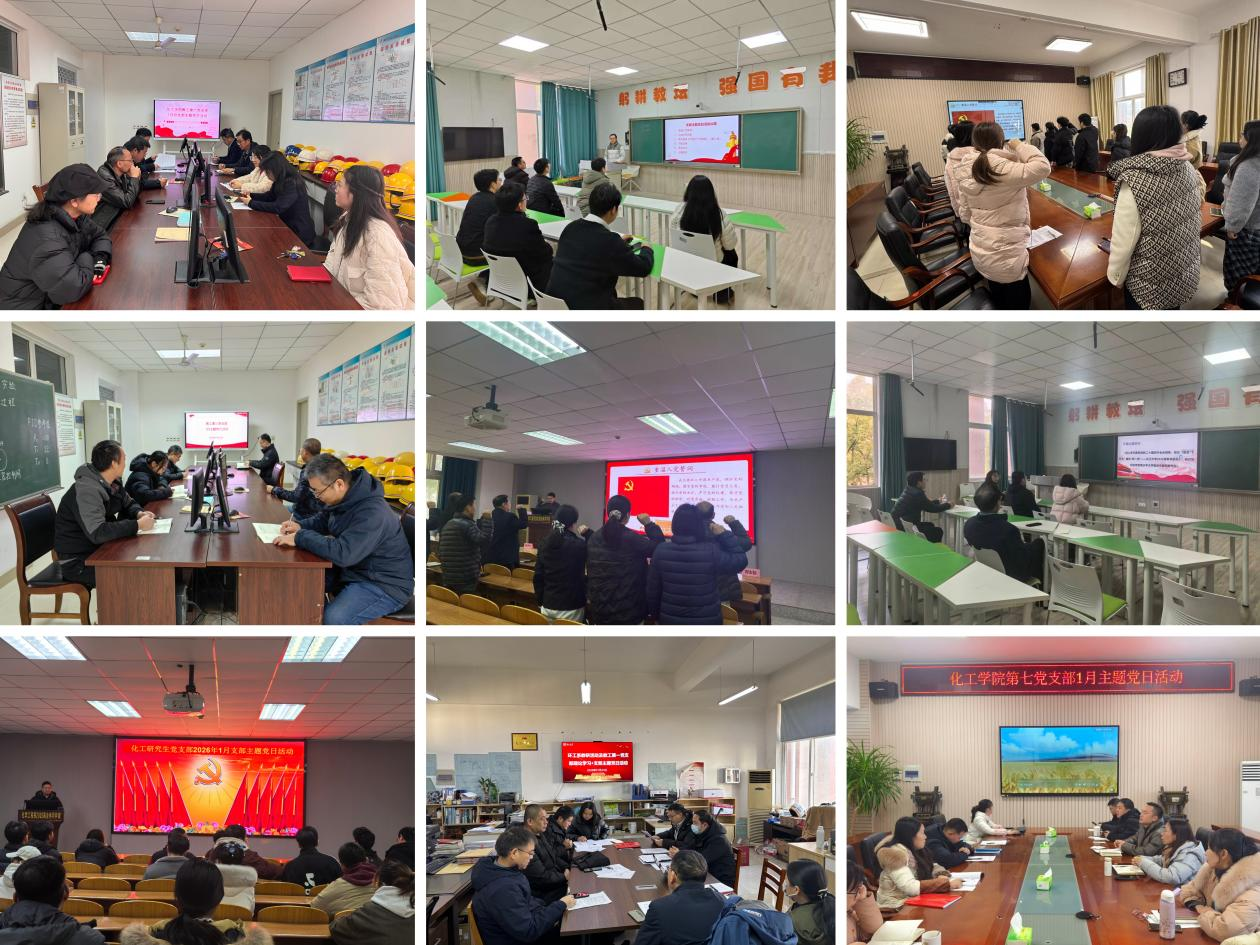 为深入学习贯彻党的二十届四中全会精神,进一步加强党员思想政治教育,推动党建与事业发展深度融合,2026年1月,化工学院在全院范围内组织开展政治理论学习和支部主题党日活动。