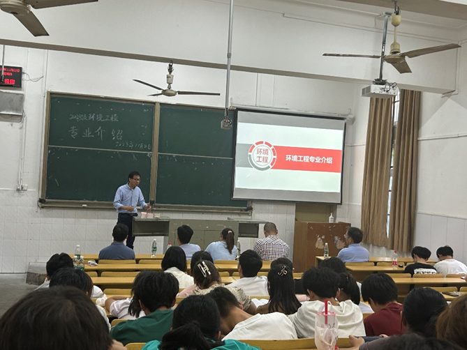 实验中心主任黄河老师指出环境工程专业与人们的生活密不可分,是当今国家乃至世界极为关注的一门学科。黄河老师鼓励学生们在课程学习中不仅要掌握理论知识,还要注重实践能力的培养。随后,环工系主任朱米家老师详细介绍了环境工程专业的核心课程,提醒学生们要重视课程学习,为未来的科研和工作打下坚实的基础。