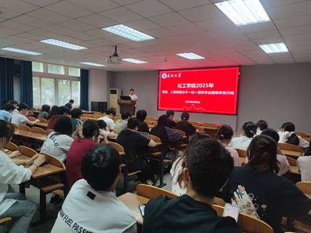 为建设优良学风,充分发挥学生党员和入党积极分子的先锋模范作用,强化责任担当,2025年6月8日,化工学院在14教北201召开党员、入党积极分子一对一帮扶学业困难学生行动会议。党委副书记杨会军、辅导员王娜、周学素,22级、23级学生党员和入党积极分子、学业困难学生参加活动。