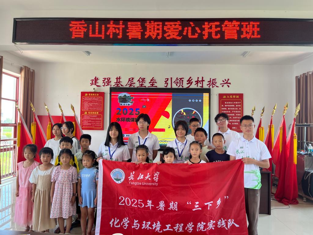 在洪湖市香山村村委会,为青少年设计的科普活动加入了实验环节。“彩虹雨”实验和不同水样酸碱变色实验让现场充满惊叹与欢笑。通过亲手操作,孩子们对“爱水、护水、节水”的理解更加直观,环保知识从抽象概念变为可感知的行动指南。