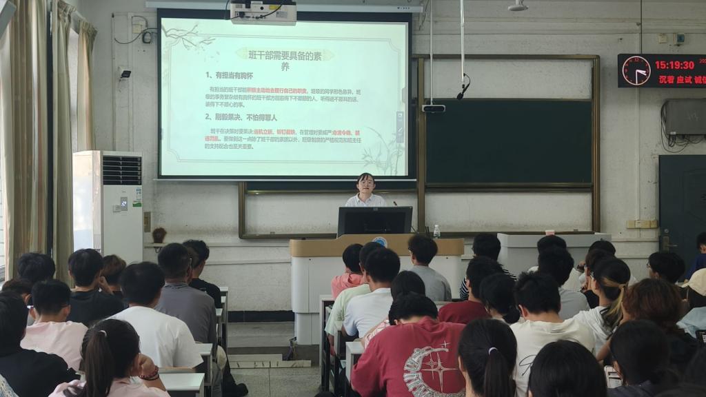 最后,徐老师就班级日常管理中的具体工作进行了细致讲解,涵盖考勤管理、信息传达、活动组织、心理关怀等多个方面,并结合常见问题提出实用建议,为新生班干部提供了清晰、可操作的工作指南。