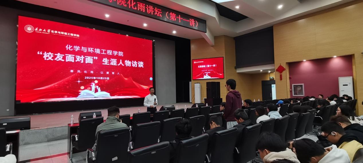 (通讯员 陈玥霖)为帮助大一新生扣好职业生涯的“第一粒扣子”,2025年10月25日上午,化工学院在西校区农科大楼1058报告厅举办“化雨”讲坛第十一讲暨本科生职业导师聘任仪式。本次活动特邀学院2001级校友、安东油田服务集团副总裁邓勇担任主讲嘉宾,并正式聘任其为学院本科生职业导师。学院党委副书记杨会军、辅导员徐茵及2025级相关专业本科生共同参加活动。