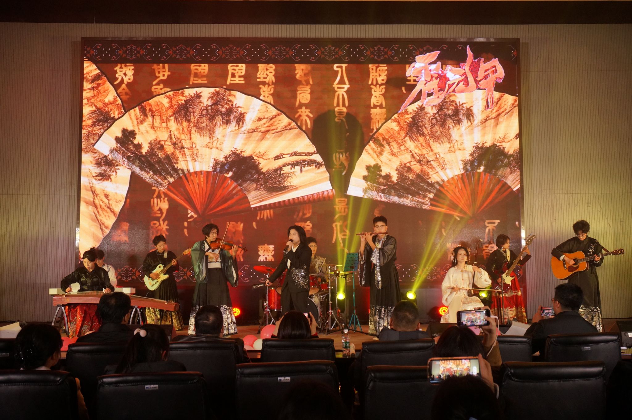 由不晚乐队、东校区器乐部与笛箫协会跨界合作的歌曲《霍元甲》,将传统民乐与现代摇滚元素巧妙融合,刚劲有力的节奏震撼人心;张健禹、苏乘玮带来的歌曲《可惜没如果》旋律悠扬,婉转的乐声传递出细腻的情感。宋明易、张文佳等同学表演的舞蹈《armageddon》极具张力,展现出青春的蓬勃朝气;优师32501班、化学32501班呈现的情景剧《白雪公主和七个大高个》创意十足,幽默的剧情、生动的表演引得全场捧腹,为晚会增添了诸多欢乐。各节目参演人员共同唱响《西楼别序》,歌声婉转悠扬,余韵悠长。