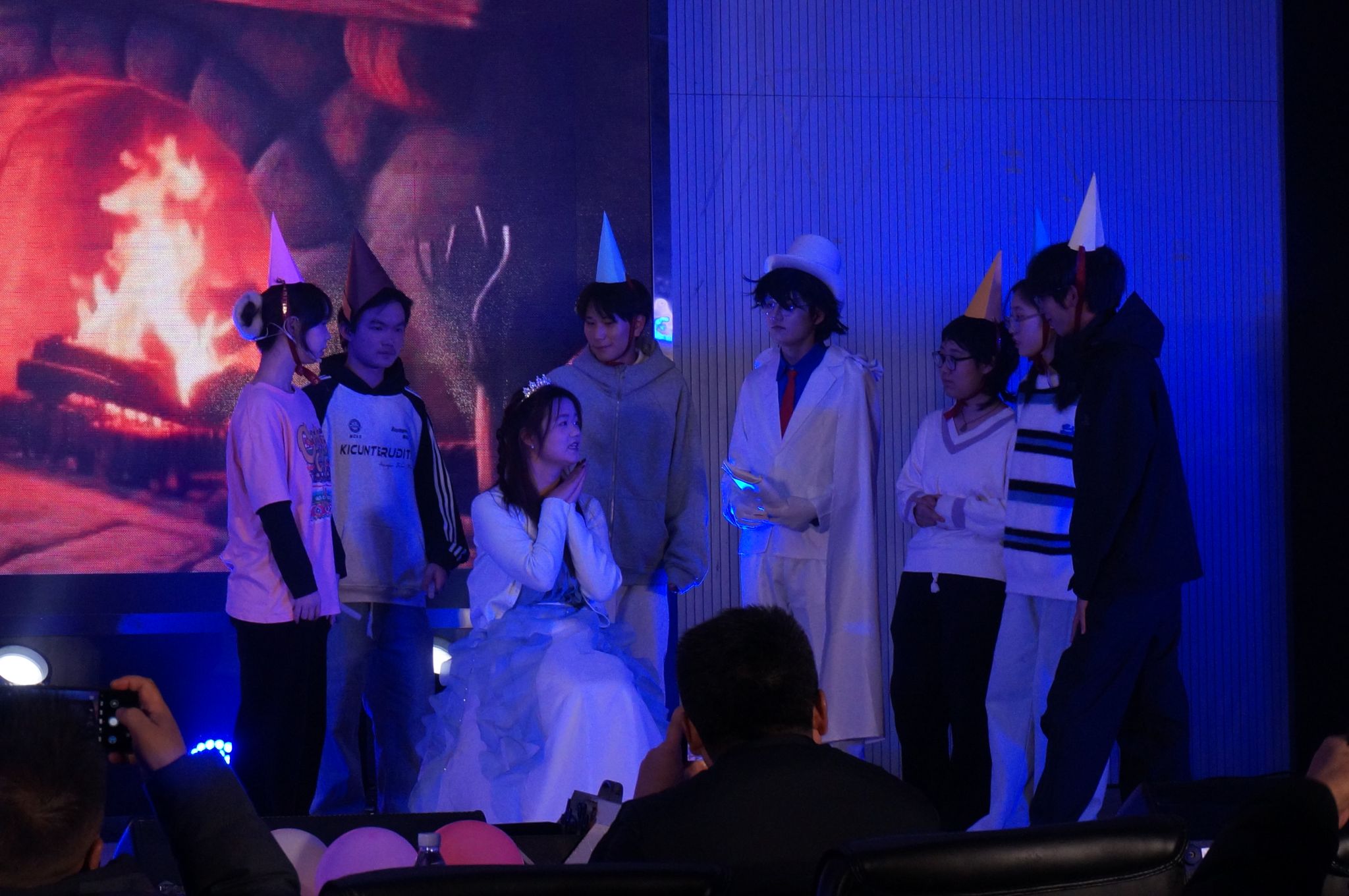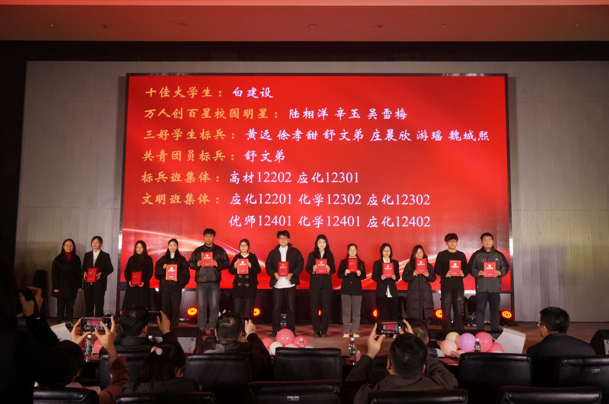 由学生会带来的朗诵《觉醒》铿锵有力、饱含深情,字里行间洋溢着青年学子的责任与担当;程紫菱、艾秦薇等同学演绎的舞蹈《寄明月》舞姿曼妙,古典韵味悠长,将观众带入诗意画卷。王珅珅、闵丽君合唱的《美丽的神话》深情款款,婉转的歌声诉说着动人故事。青支队、化昱班第二期全体成员带来的《夜空中最亮的星》,全体成员携手合唱,传递出同心筑梦、共赴新程的坚定信念,现场观众纷纷挥动荧光棒,晚会在温馨而热烈的氛围中落下帷幕。