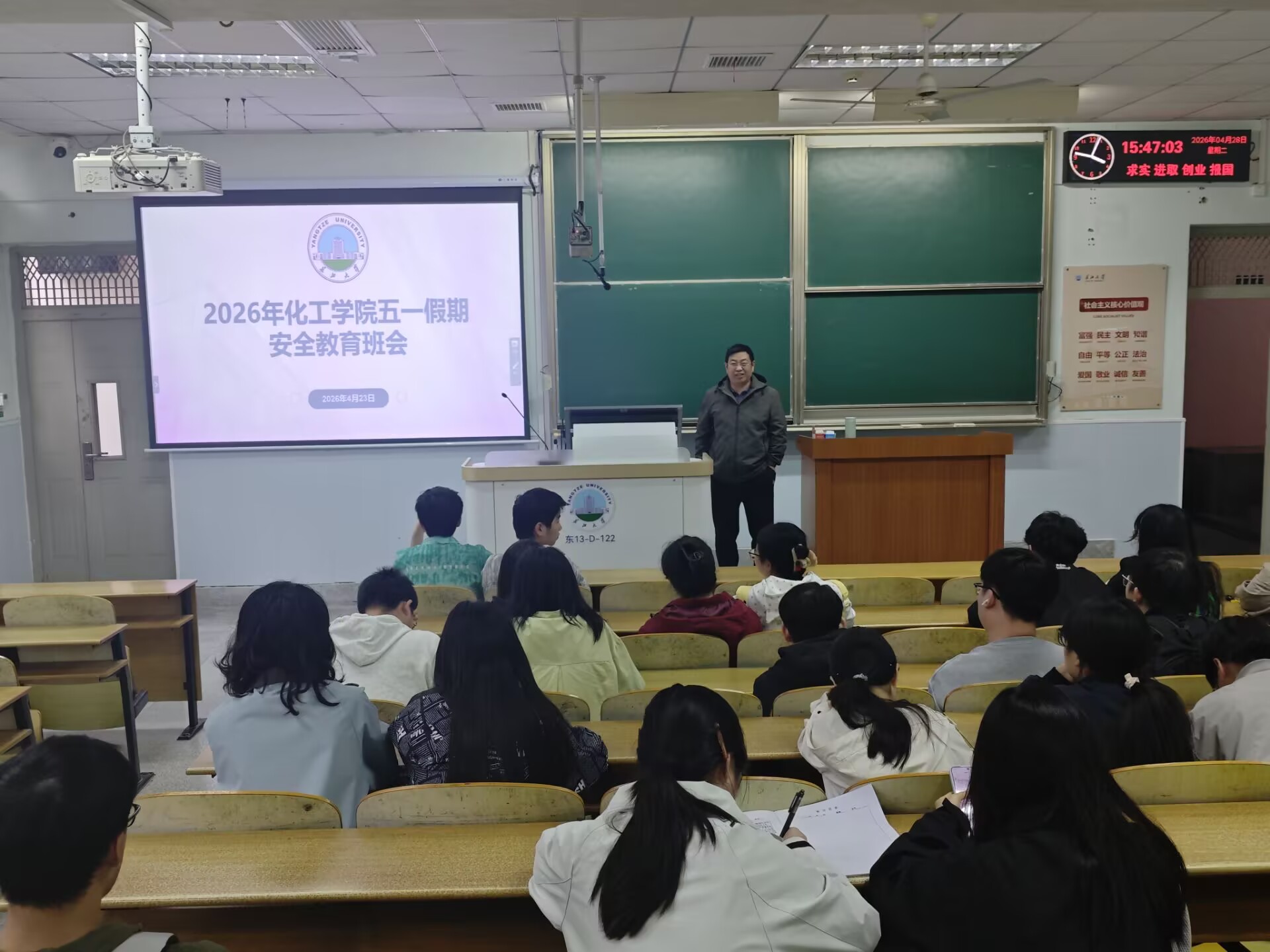 (通讯员 王陈)2026年五一劳动节假期将至,为切实守护学生假期安全,进一步提升学生安全防范意识,杜绝各类安全事故发生,保障全体学生度过平安愉快的假期,4月23日-4月29日,化工学院组织全体学生召开五一假期安全主题班会。本次班会分层有序开展,本科生各班由班主任牵头组织,研究生班级由辅导员统筹安排,导师深度参与,实现安全教育全覆盖。