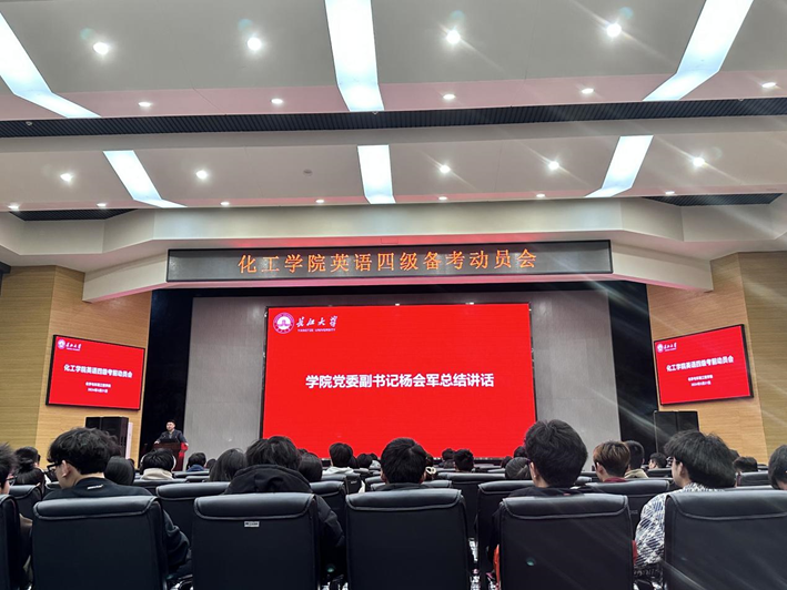 (通讯员 王梦睿 蔡 略)为营造良好学习氛围,激发学生英语学习激情,化工学院于3月21日晚在农科大楼1058报告厅举行英语四级考试动员大会,学院党委副书记杨会军、辅导员蔡略老师和全体大一学生参加大会。