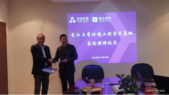 经过充分的交流与协商,学院院长颜学敏和荆州浦华荆清水务有限公司总经理肖建平签订了环境工程专业校外实习实践基地共建协议,williamhill英国实验室与国有资产处副处长彭礼进颁发了“williamhill英国教学实习基地”牌,化工学院教学副院长吴爱斌颁发了实习指导教师聘书。