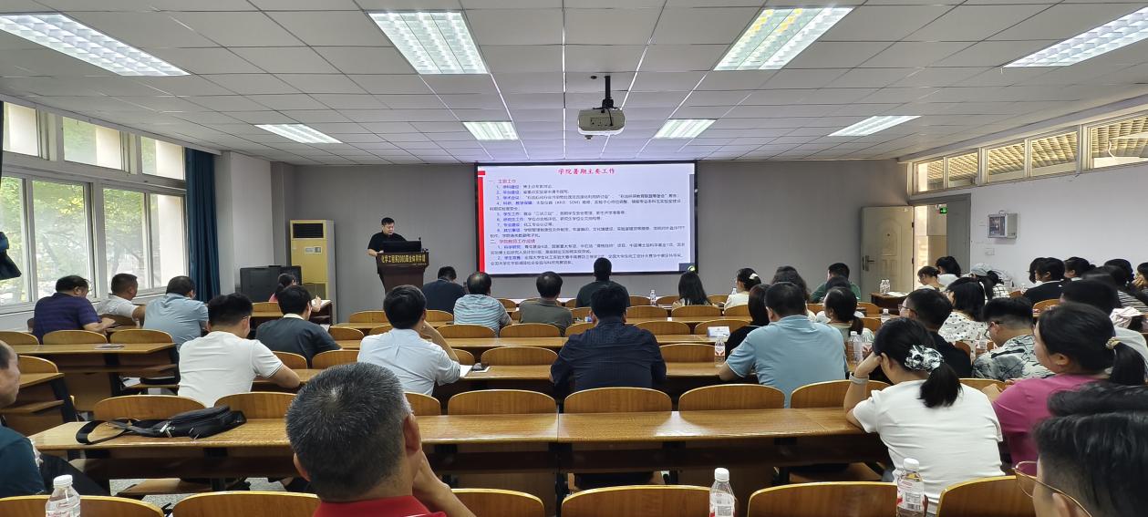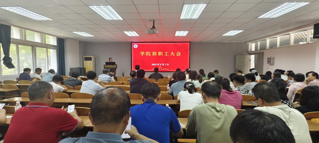 9月7日下午,化学与环境工程学院在14教北201会议室召开全体教职工大会,会议分为两个阶段进行。 第一阶段,全院教职工集中收听收看了学校庆祝第41个教师节暨新学期工作部署会议,认真聆听了校长刘勇胜和校党委书记王建平的重要讲话,进一步统一思想、明确学校新学期发展目标和重点任务。 第二阶段会议由学院党委书记王丽主持。她首先带领全体教职工开展政治理论学习,重点围绕党纪警示教育、习近平总书记近期重要讲话以及省委十二届十次全会精神等内容进行了深入学习和解读。随后,王丽书记简要阐述了本学期学院党委的主要工作思路和实施路径。 学院各分管领导分别通报了暑期相关工作并布置新学期任务。副院长吴爱斌就专业认证、毕业论文抽检和研究生推免等教学工作进展进行了说明;副院长肖围围绕科学研究、研究生培养与财务管理等方面汇报了暑期成果并作出具体安排;副书记杨会军则针对学生就业推进、学科竞赛组织与学风建设等工作进行了总结与部署。 院长赖璐传达了学校新学期工作研讨会精神,全面总结了学院暑期在学科与平台建设、科研教学保障、学生管理服务等方面取得的显著进展,特别是在科研项目与学科竞赛中获得的突出成绩。结合学校整体部署,赖璐院长重点强调了新学期四项核心任务:一是系统推进“十四五”总结与“十五五”规划编制;二是全力推进博士点申报与高水平人才引育,提升科研组织化程度;三是积极筹建省级重点实验室,培育高质量教学成果,办好高水平学术会议;四是持续优化学院治理体系,加强条件保障,切实改善教职工待遇和发展环境。 本次大会内容充实、导向明确,为学院新学期各项工作高效有序开展奠定了坚实基础。全院教职工进一步凝聚了共识,增强了动力,将以更加昂扬的斗志和扎实的行动,共同推动学院事业高质量发展。 (审核:王丽 编辑:王志权)