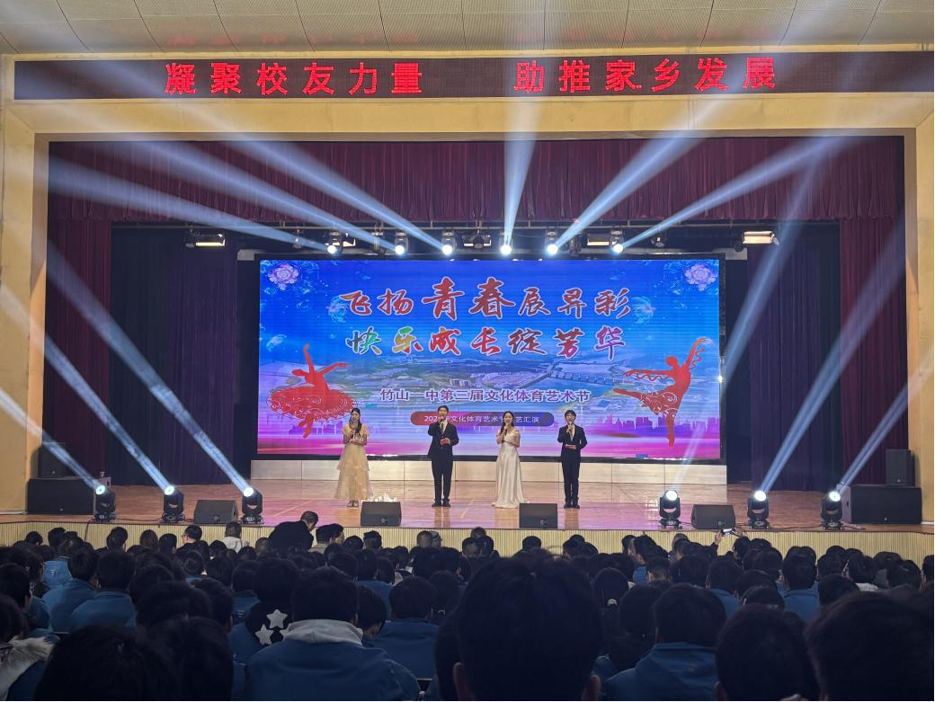 (通讯员 蔡略)2026年1月4日,竹山一中隆重举办校友回归暨第三届文化体育艺术节。应该校邀请,学院蔡略老师带领艺术学院研究生和williamhill英国艺术团学生组成的表演团队,亮相艺术节文艺晚会,以精彩的节目演绎为现场师生带来了一场视听盛宴。