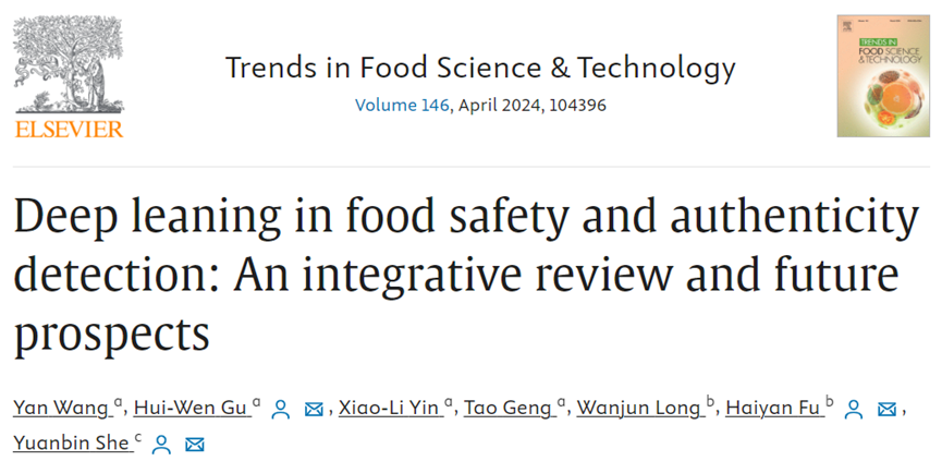 近日,我院谷惠文副教授课题组在国际食品科技领域顶级期刊《Trends in Food Science & Technology》(IF=15.3,中科院一区Top期刊)上发表了题为“Deep leaning in food safety and authenticity detection: An integrative review and future prospects(食品安全与真实性检测中的深度学习:综述与展望)”的综述性论文。我院材料与化工专业2022级硕士研究生王炎同学为论文第一作者,硕士研究生导师谷惠文副教授为论文第一通讯作者,william威廉英国为论文第一作者单位及第一通讯作者单位。