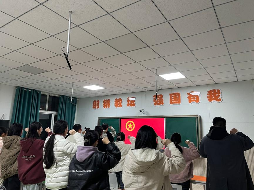 随后,学院团委周学素老师对新团员们的加入表示热烈的欢迎和诚挚的祝贺,希望全体新团员能够按照团员的标准严格要求自己,肩负起团员的责任和义务,不仅在组织上入团,更要在思想上和行动上入团。最后,全体与会人员齐唱团歌,激昂的歌声中凝聚着每一个共青团员的信念和力量。